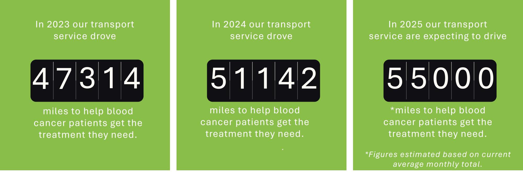 A £50 donation is worth £100 and could provide transport for a number of blood cancer patients to get to their lifesaving treatment.