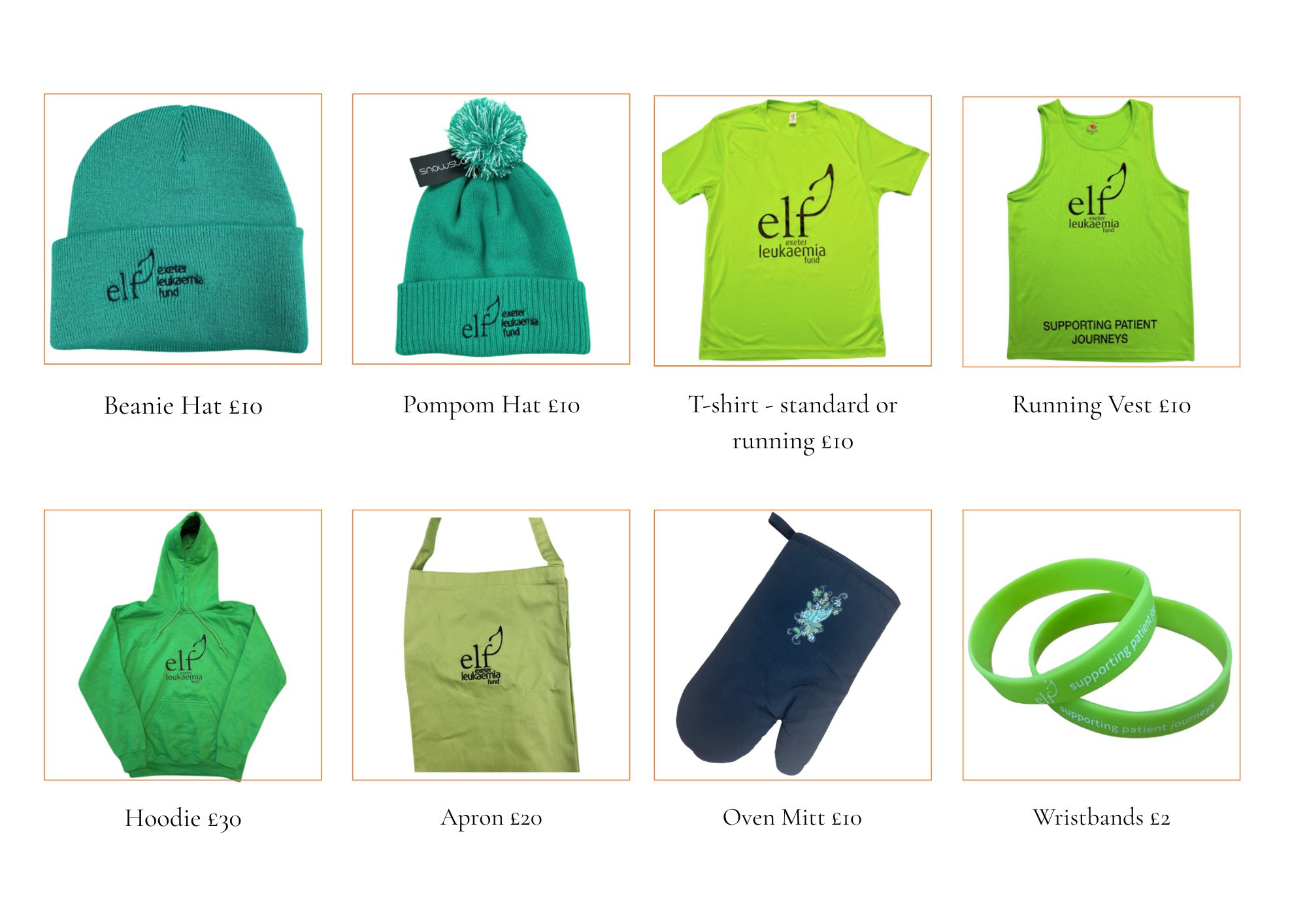 To order any of our merchandise please email enquire@elfcharity.org.uk or call 01392 493344 (option 3)